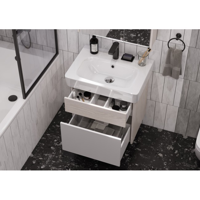 Тумба подвесная 60, Верди 60 Белый/Ясень фабрик под умывальник Нео 60 Aquaton