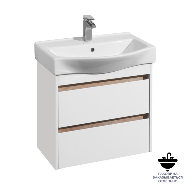 Тумба подвесная 65, Нортон Белый глянец / Дуб Эндгрейн под умывальник Беверли 65 Aquaton