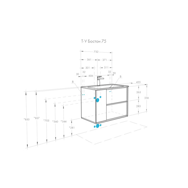 Тумба подвесная 75, Бостон 75 Дуб эврика под умывальник Элина 75 Aquaton