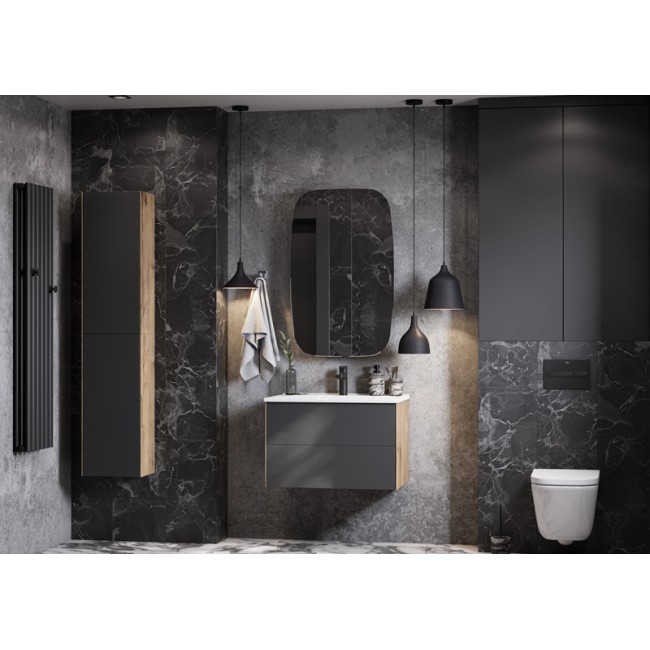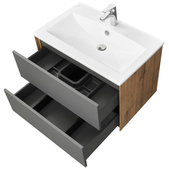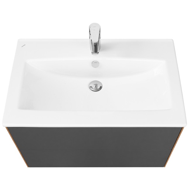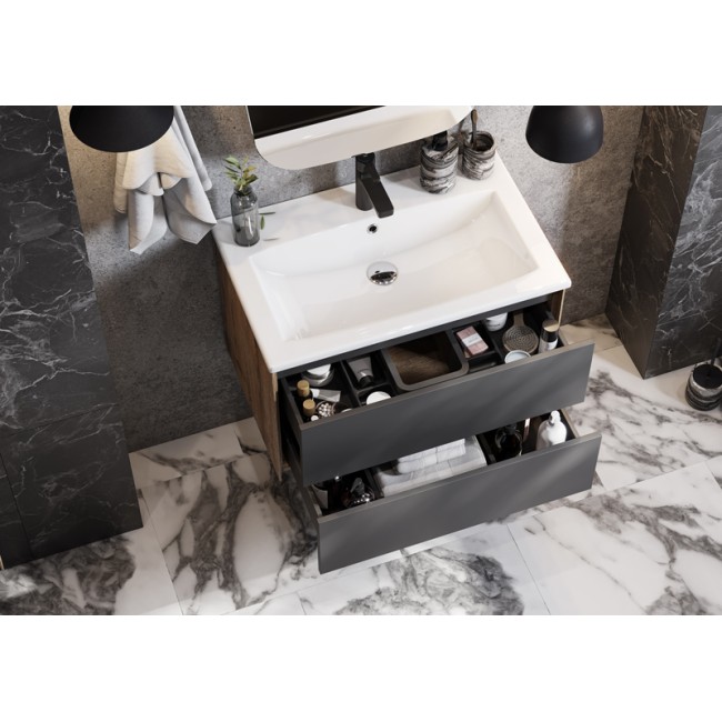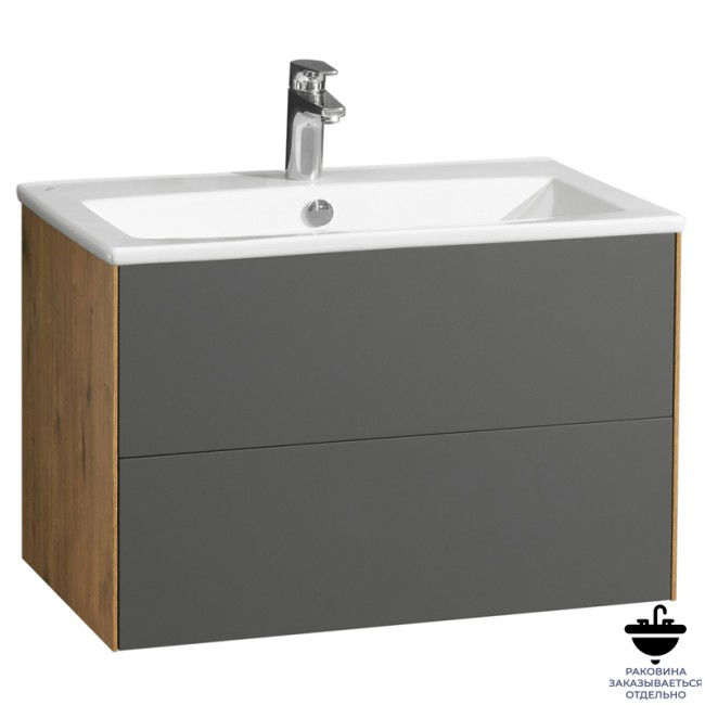 Тумба подвесная 75, Сохо 75 Дуб Веллингтон/Графит софт под умывальник Элина 75 Aquaton