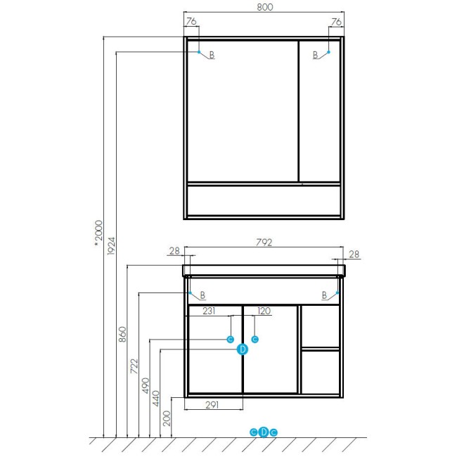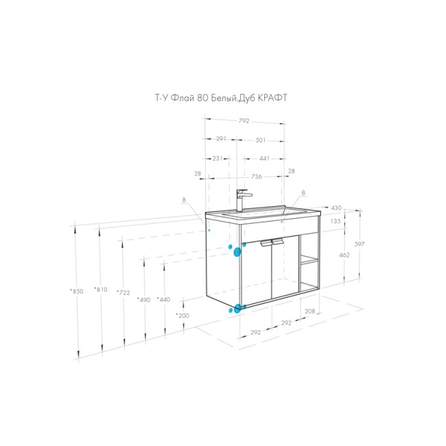 | Ширина без раковины, мм | 792 |
