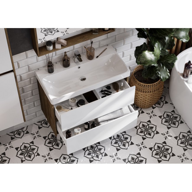 Тумба подвесная 90, Сканди 90 Белый/Дуб Рустикальный под умывальник Адриана 90 Aquaton