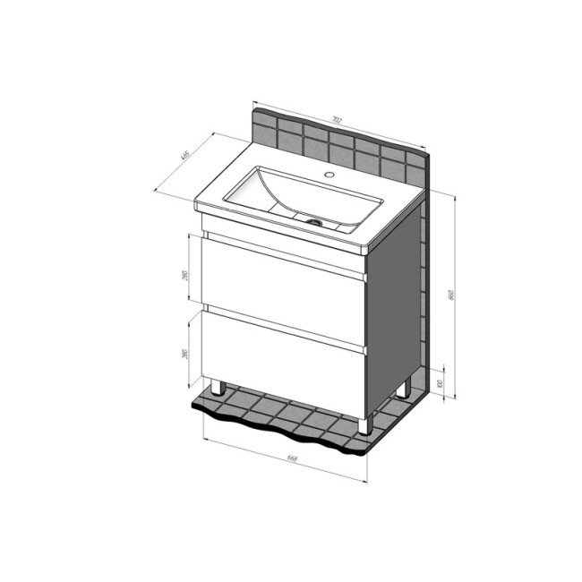 | Ширина без раковины, мм | 668 |