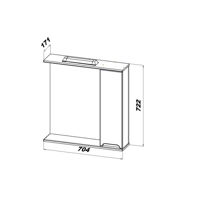ТОЛЬКО САМОВЫВОЗ. Зеркальный шкаф Sanstar Адель 60 П. Количество дверок - одна с механизмом доведения. Монтаж - подвесной. Ориентация - правостороняя (шкафчик справа). Светильник - IP44, 220B, 4Вт, 4000К - установлен. Выключатель, розетка - в комлекте. Две вкладные полки. Одна открытая полочка под зеркалом.