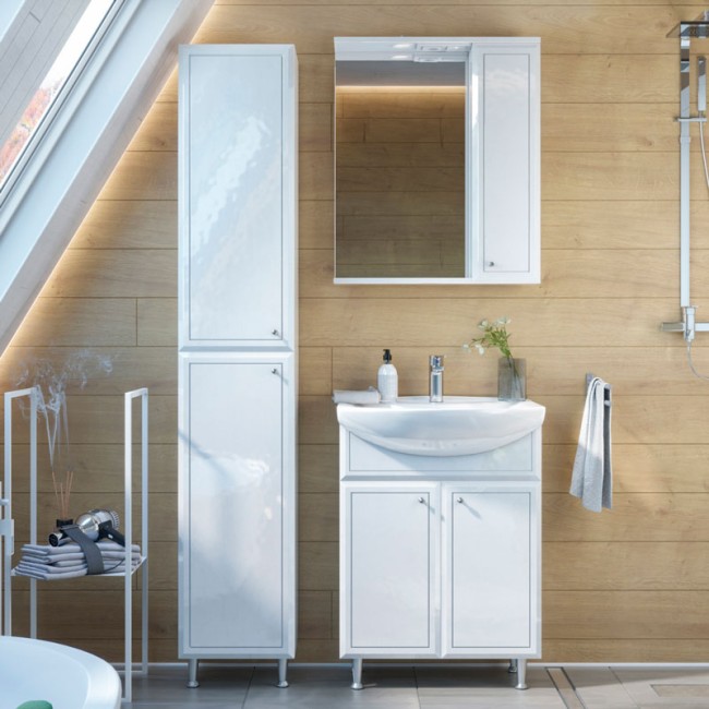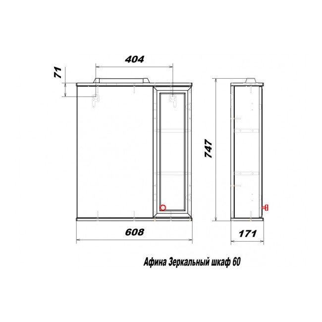 ТОЛЬКО САМОВЫВОЗ. Зеркало "Афина 60" отлично впишется в любой интерьер ванной комнаты. Модель является удобным подвесным шкафчиком из МДФ, снабженным распашной правой дверцей. Корпус шкафчика изготовлен из плотного МДФ покрытого прочной пленкой, предотвращающей проникновению влаги в материал основы. Полки внутри шкафчика стеклянные и крепятся с помощью надежных полкодержателей Петли с доводчиком, МДФ, покрытие пленка.