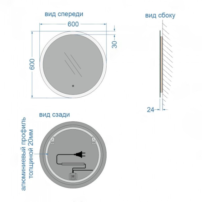 Зеркало 60 круглое, LED подсветка, 9,6 Вт/м 337ск КЗСК
