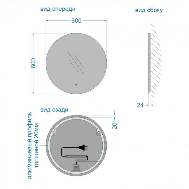 Зеркало 60 круглое с LED подсветкой 6000К 9,6 Вт/м с сенсорным выключателем 329ск КЗСК