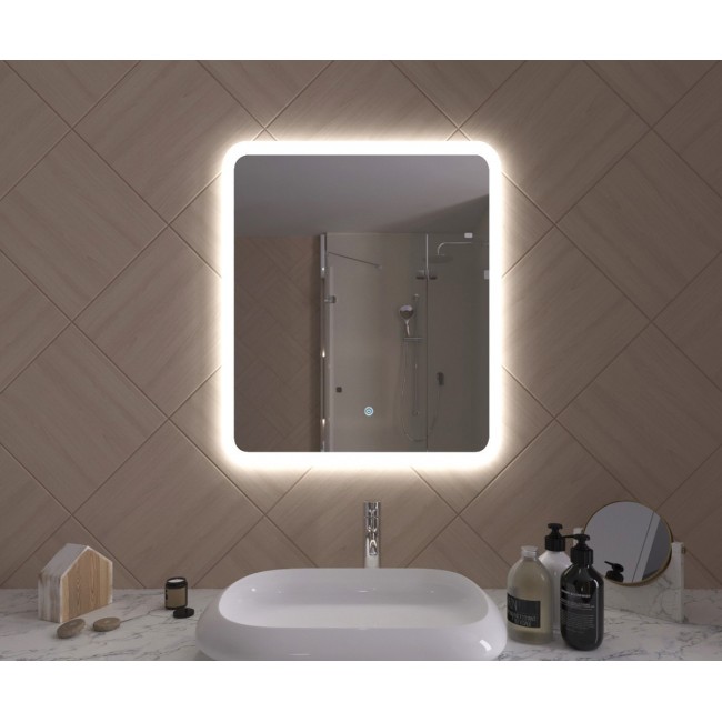 Зеркало 600х700 Gent с LED подсветкой,подогревом,литым коробом и сенсорным выкл.Кайман Glassiko