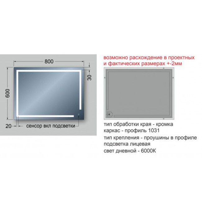 Зеркало 60*80 LED подсветкой 6000К 9,6 Вт/м с сенс.выкл 319ску КЗСК