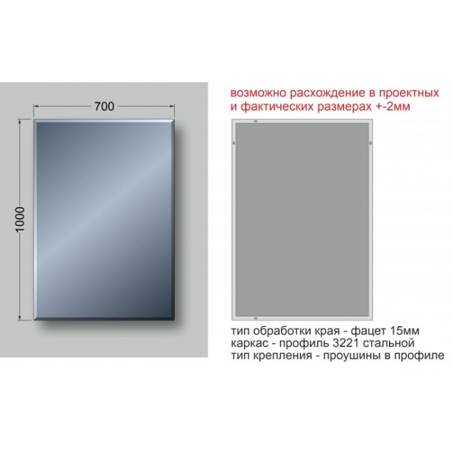 Зеркало 70*100 с фацетом в стальном алюминиевом профиле, универсальное крепление 628 КЗСК
