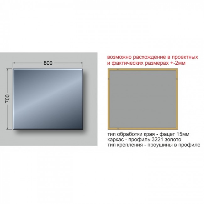 Зеркало 70*80 в золотом алюмюминиевом профиле, универс. крепл. 623 КЗСК