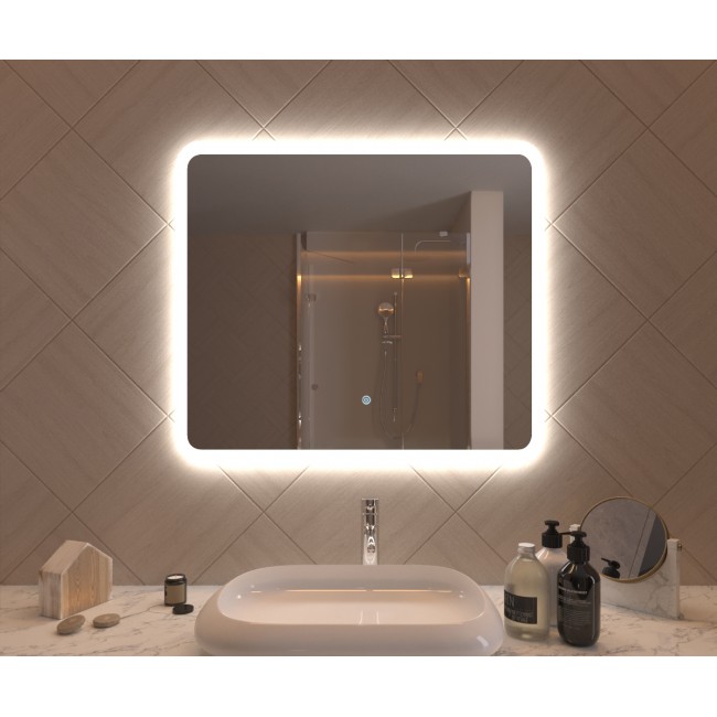 Зеркало 800х700 Gent с LED подсветкой,подогревом,литым коробом и сенсорным выкл. Кайман Glassiko