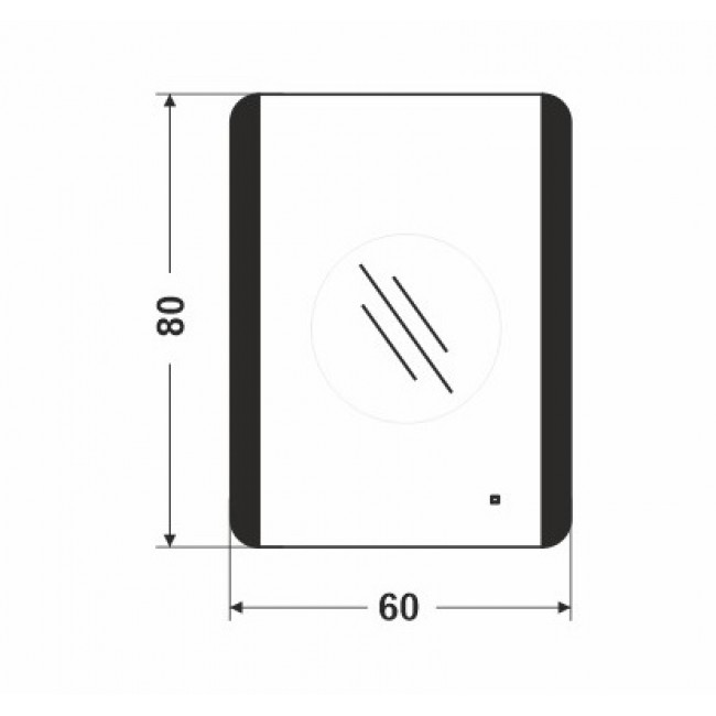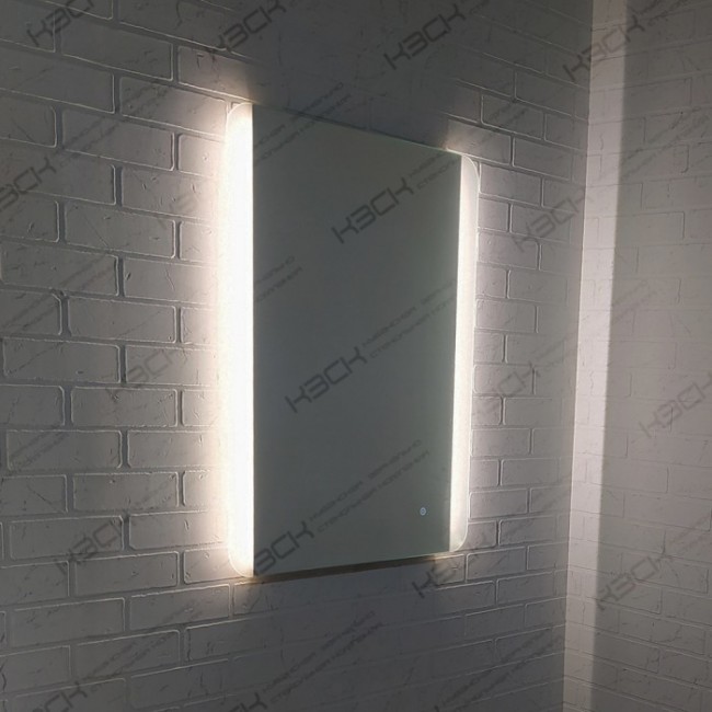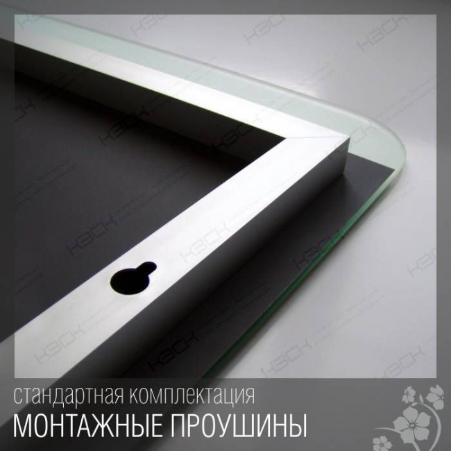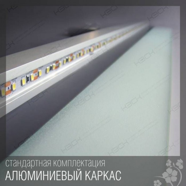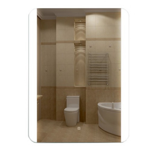 Зеркало 316 с LED подсветкой 9,6 Вт полосы переходящей на фон (светодиодная лента) 80 х 60 см - изготовлено из влагостойкого полотна, с еврокромкой по периметру, с внутренним алюминиевым профилем толщиной 20 мм, с сенсорным выключателем и сетевым проводом с вилкой
