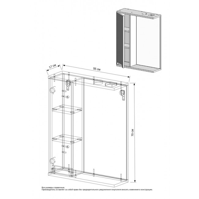 | Комплектация | Зеркальный шкаф; Паспорт; Крепления к стене. |