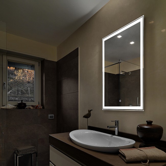 Зеркало с LED-подсветкой и двумя вариантами подсветки: теплого и холодного света . Модель сделана из стекла высшего качества M0 (влагостойкое, минимальные оптические искажения). LED-подсветка выдерживает до 50 тыс. часов работы в непрерывном режиме. Изделие оснащено сенсорным выключателем с функцией плавного диммирования, с запоминанием последнего значения. Короткие касания светящейся области включают/выключают подсветку, длительное касание меняет яркость свечения. Экологически чистый продукт выполненный по стандартам ЕС. Экологически чистый продукт выполненный по стандартам ЕС.