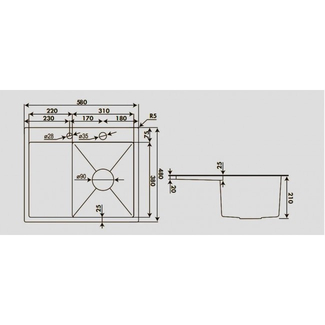 Кухонная мойка Hoffger изготовлена из высококачественной нержавеющей стали AISI304 с PVD покрытием, которое придает изделию особую прочность и коррозионную устойчивость.