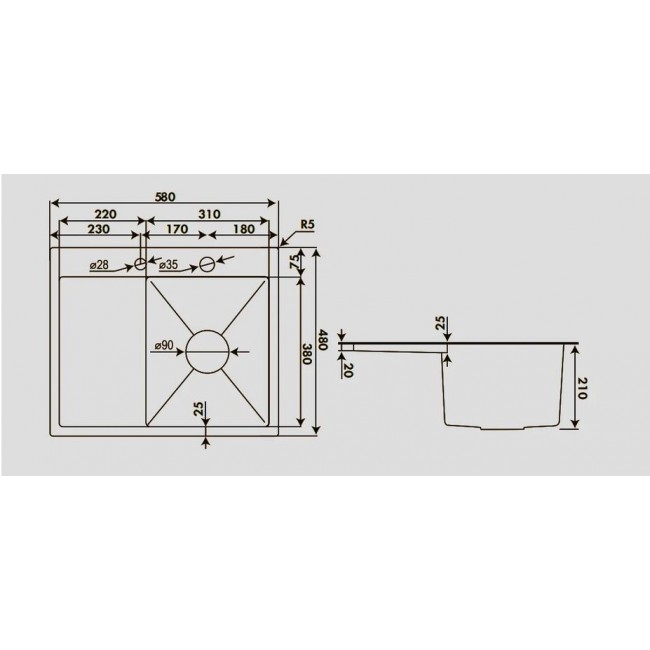 Кухонная мойка Hoffger изготовлена из высококачественной нержавеющей стали AISI304 с PVD покрытием, которое придает изделию особую прочность и коррозионную устойчивость.