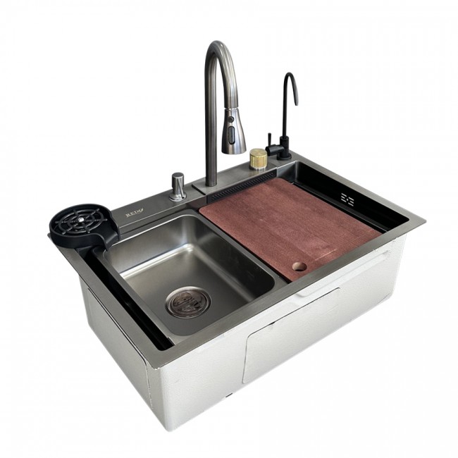 Кухонная мойка REDO изготовлена из высококачественной нержавеющей стали AISI304 с PVD покрытием, которое придает изделию особую прочность и коррозионную устойчивость.