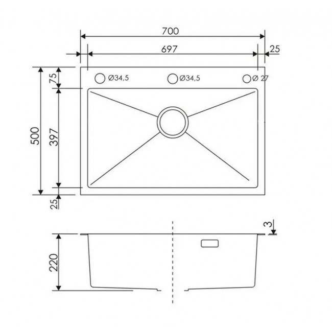 Диаметр сливного отверстия, дюймов / мм | 3 1/2" / 90 |