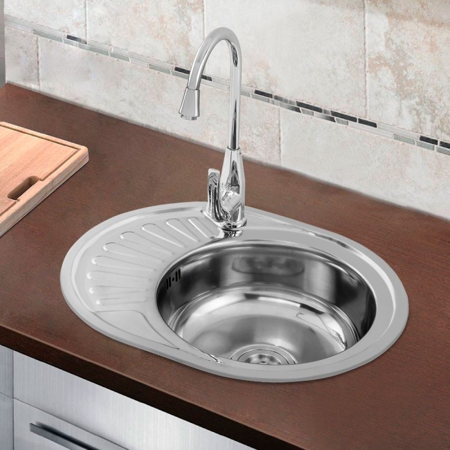 Мойка «FRAP» представляет собой круглую конструкцию со сторонами 57*45*17,5 см. Данный вид металла хорошо выдерживает перепады температур, крепок и долговечен в эксплуатации. Имеет накладной тип установки, под специально подготовленное место на кухне.