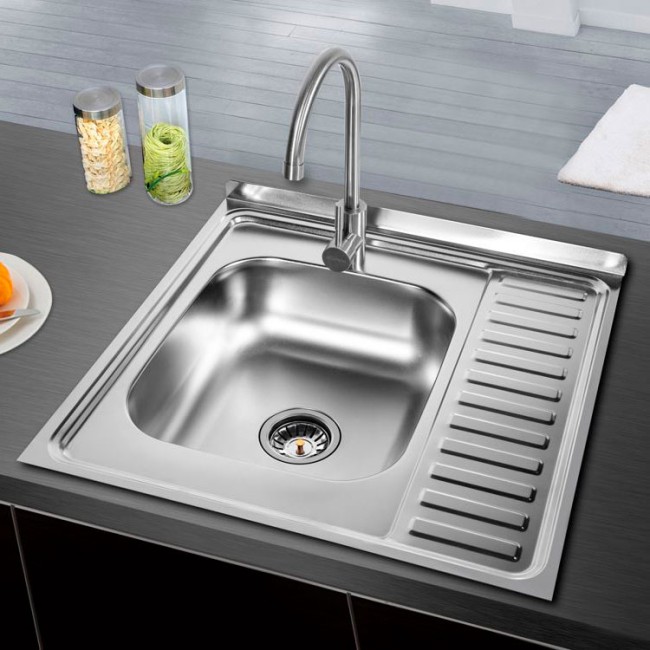 Мойка «FRAP» представляет собой прямоугольную конструкцию со сторонами 60*60*16,5 см. Данный вид металла хорошо выдерживает перепады температур, крепок и долговечен в эксплуатации. Имеет накладной тип установки, под специально подготовленное место на кухне.