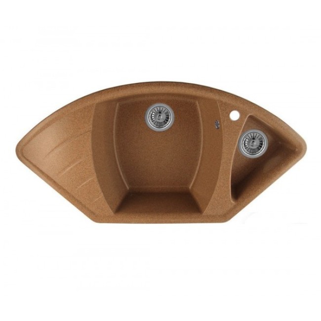 Мойка керамогранитная 25 угловая двухсекционная терракот глянец + блестки Granmill