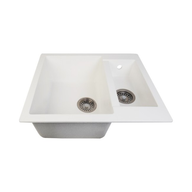 Мойка керамогранитная Hiekka Valkoinen 28 прямоугольная, двойная, белая Granmill