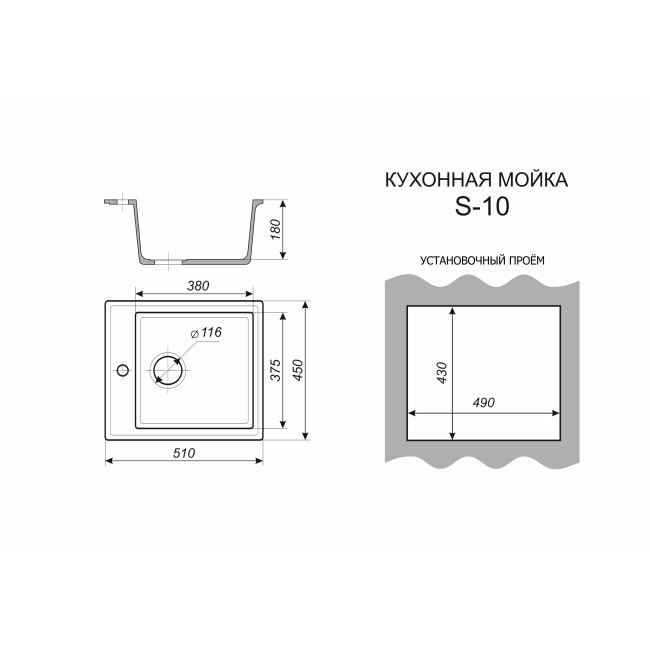 | Монтажная длина отверстия в столешнице, мм | 490 |