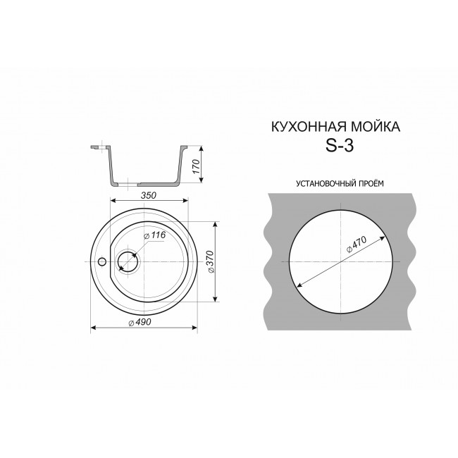 | Монтажная ширина отверстия в столешнице, мм | 470 |