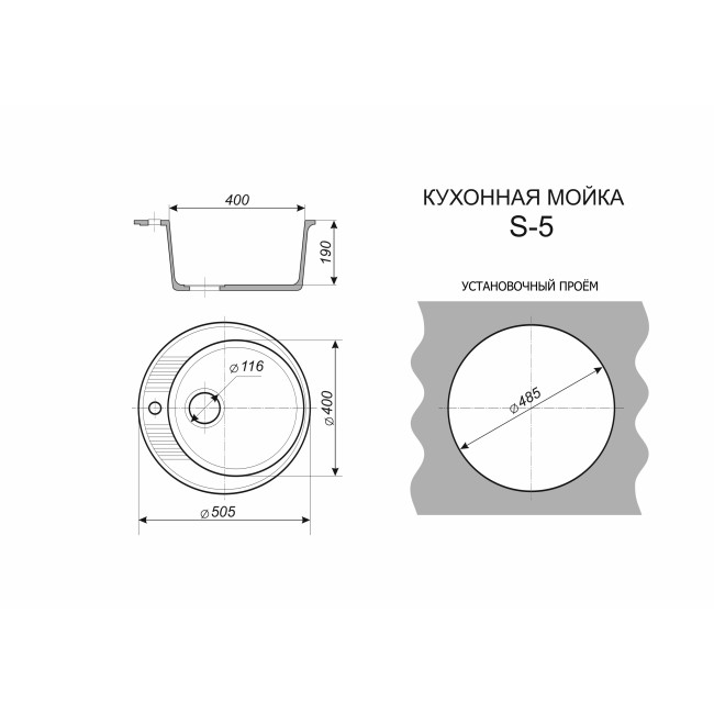 | Монтажная длина отверстия в столешнице, мм | 490 |