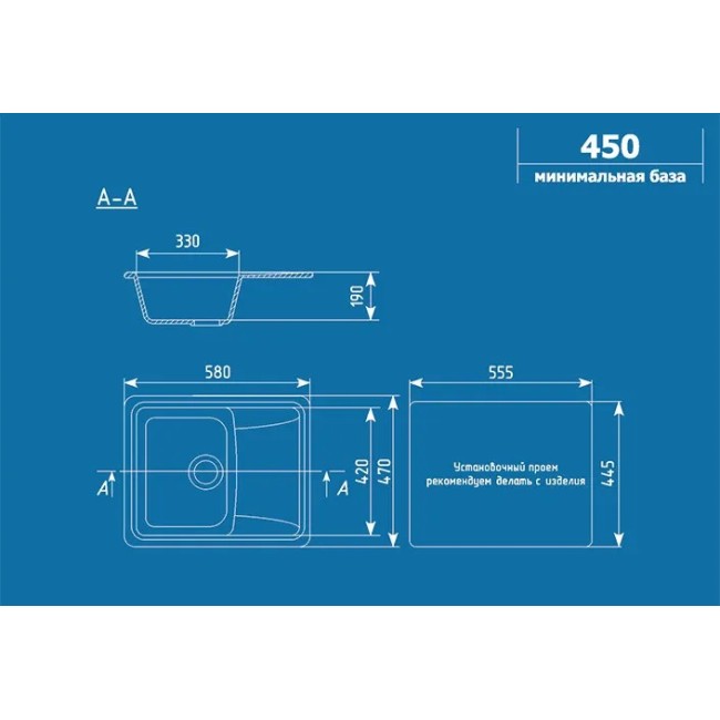 | Монтажная ширина отверстия в столешнице, мм | 465 |