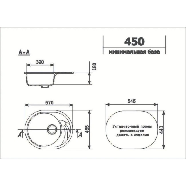 | Монтажная длина отверстия в столешнице, мм | 555 |
