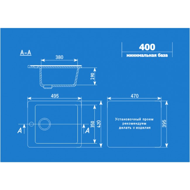 | Монтажная длина отверстия в столешнице, мм | 395 |