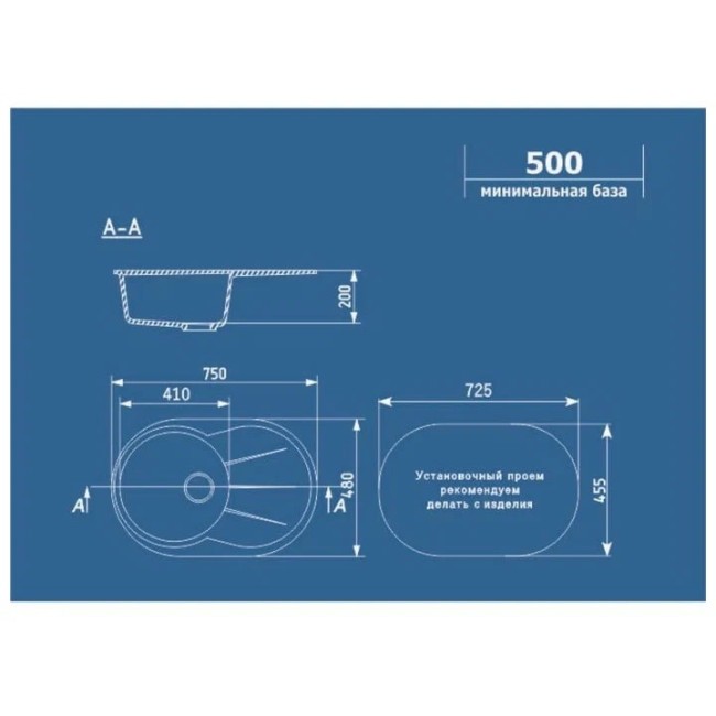 | Монтажная длина отверстия в столешнице, мм | 725 |