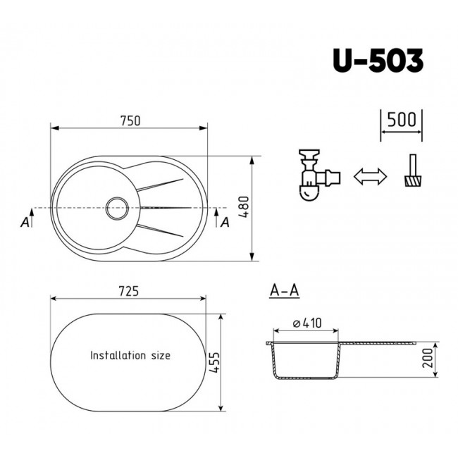 Мойка керамогранитная U - 503 - 341 ультра-белый Ulgran