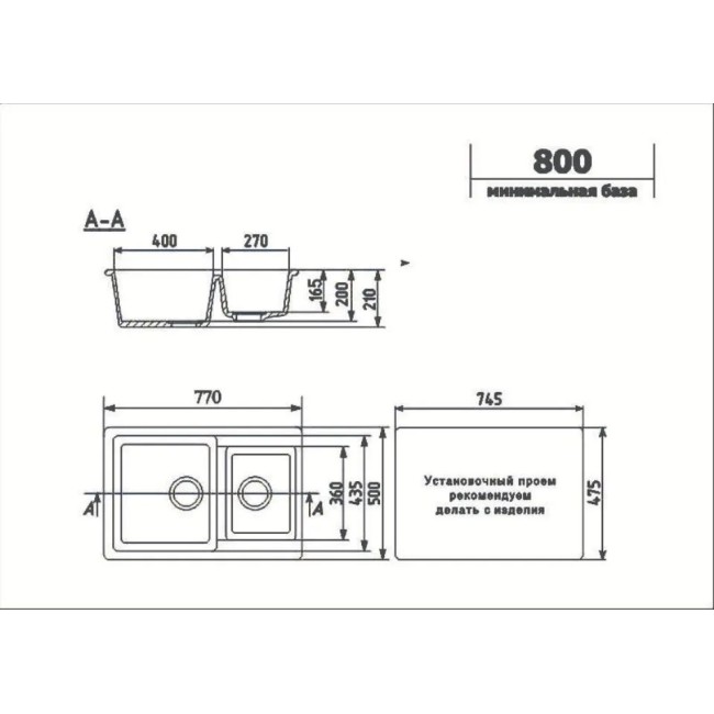 | Длина мойки, мм | 770 |