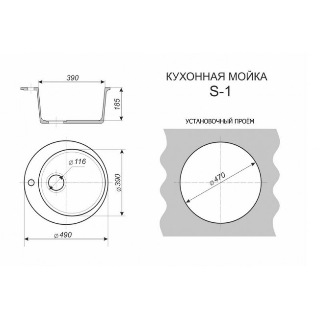 Мойка круглая 490*190мм SIMGRAN S-1 ЧЕРНАЯ ГЛЯНЕЦ