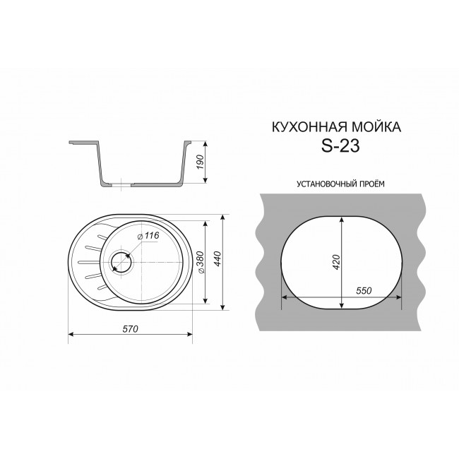 Мойка овальная 570*440мм SIMGRAN S-23 СЕРЫЙ ГЛЯНЕЦ