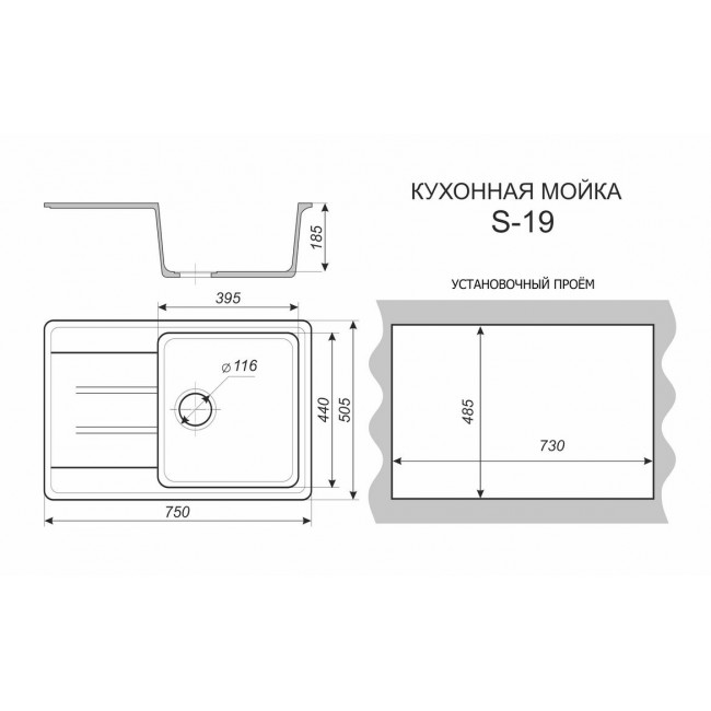 | Глубина мойки, мм | 185 |