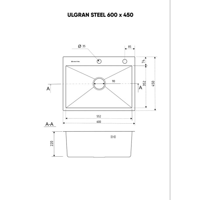 Мойка врезная из стали AISI 304 толщина крыла 3 мм стенок и дна 1,2 мм. В комплекте сливная арматура c гофро трубой и переходником в канализацию, каландер, дозатор.Мойки Ulgran обладают высокой механической прочностью благодаря уникальному материалу – искусственному камню (80% натуральная мраморная крошка различных фракций и 20% экологически чистых полиэфирных смол).Прочность искусственного камня сравнима с гранитом. Материал обладает высокой вибростойкостью и шумопоглощающими свойствами, вследствие чего шум воды при мытье посуды практически отсутствует. Правильная геометрия моек Ulgran обеспечивает идеальное прилегание изделия к столешницам. Мойки Ulgran являются экологически чистыми в отношении здоровья человека и обладают бактерицидными свойствами.