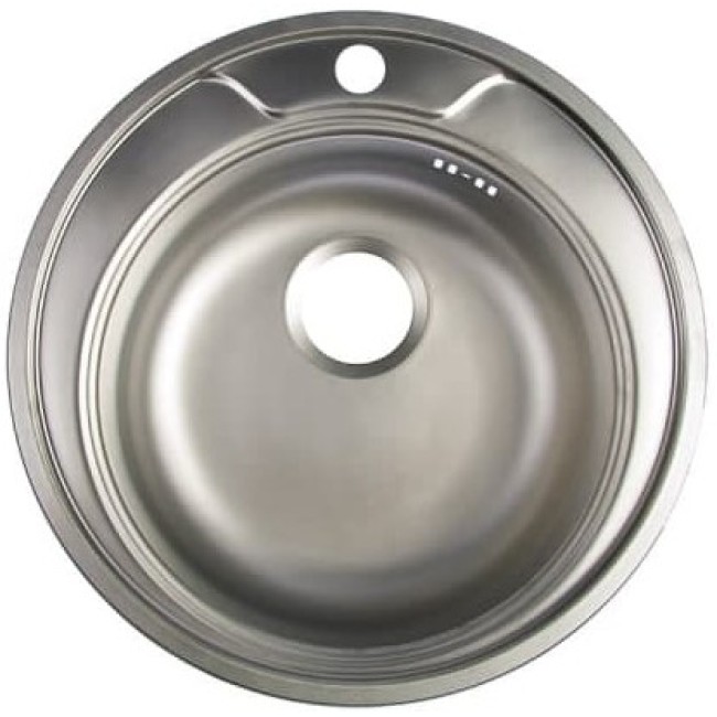 Врезная мойка изготовлена из нержавеющей стали, имеет классическую круглую форму. На поверхность изделия можно ставить горячие кастрюли, сковороды и прочие кухонные принадлежности. Материал не потемнеет и не испортится. Максимально допустимая температура — 1 500 °C.