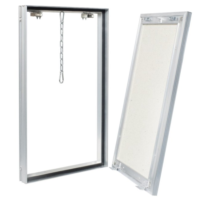 Люк под плитку используется для обеспечения легкого доступа к инженерным коммуникациям. Устанавливается в проемы стен, выполненных из различных материалов: бетон, кирпич, пеноблок и т.д. При монтаже люка в гипсокартонные стены необходимо соорудить для него отдельный каркас. Люк выдерживает значительные нагрузки и его можно облицовывать тяжелыми отделочными материалами: керамическая плитка, керамогранит, камень и т.п. Конструкцию состоит из рамы и дверцы. Рама выполнена из высокопрочного алюминиевого профиля, соединенного с помощью аргонно-дуговой сварки. Дверца из специального алюминиевого профиля и влагостойкого гипсоволокна (ГВЛВ). Люк оборудован качественными нажимными замками, открывается и закрывается нажатием на дверцу люка. Дверца полностью снимается. Для обеспечения безопасности при открывании люк имеет специальные зацепы в основании крышки и страховочную цепь вверху, что предотвращает возможное падение дверцы при открывании.