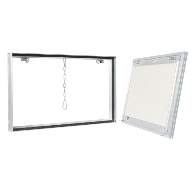 Люк под плитку используется для обеспечения легкого доступа к инженерным коммуникациям. Устанавливается в проемы стен, выполненных из различных материалов: бетон, кирпич, пеноблок и т.д. При монтаже люка в гипсокартонные стены необходимо соорудить для него отдельный каркас. Люк выдерживает значительные нагрузки и его можно облицовывать тяжелыми отделочными материалами: керамическая плитка, керамогранит, камень и т.п. Конструкцию состоит из рамы и дверцы. Рама выполнена из высокопрочного алюминиевого профиля, соединенного с помощью аргонно-дуговой сварки. Дверца из специального алюминиевого профиля и влагостойкого гипсоволокна (ГВЛВ). Люк оборудован качественными нажимными замками, открывается и закрывается нажатием на дверцу люка. Дверца полностью снимается. Для обеспечения безопасности при открывании люк имеет специальные зацепы в основании крышки и страховочную цепь вверху, что предотвращает возможное падение дверцы при открывании.