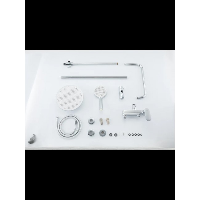 | Комплектация | Смеситель; Душевая штанга; Тропический душ; Душевая лейка и шланг; Держатель лейки; Настенные держат |