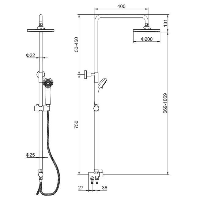 | Комплектация | Штанга; Тропический душ; Душевая лейка; Шланг; Держатель лейки; Настенные держатели. |