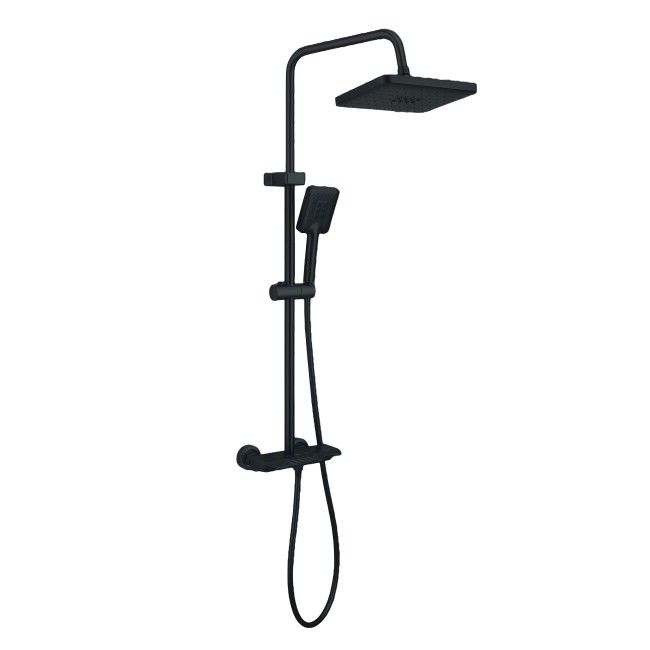 Душевая система выполнена из высококачественного алюминия, который обеспечивает долговечность и устойчивость к коррозии. Цвет модели — черный, что придает ей стильный и современный вид.