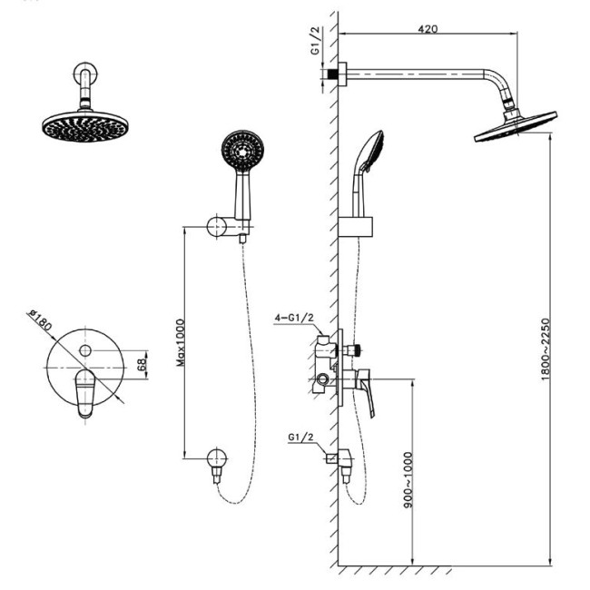 | Форма верхнего душа | Круглая |
