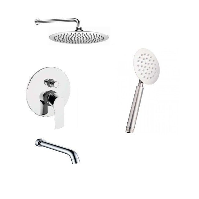 Количество в коробке: 5шт. Изготовлен из высококачественной нержавеющей стали, предназначен для использования в ванне или душе и представляет собой встраиваемый набор из стационарной потолочной лейки, лейки с гибким шлангом, излива для наполнения ванны, трехпозиционного переключателя режимов работы смесителя и металлический рычаг включения/выключения подачи воды. В комплекте все необходимые крепления и подключения.