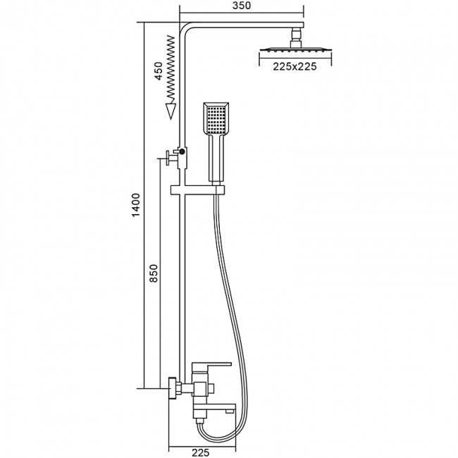 | Размер верхнего душа, мм | 225 х 225 |