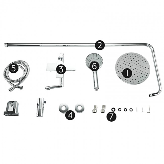 | Комплектация | смес,стойка,троп.душ,лейка,шланг,держатели,отраж.,экцентр |
